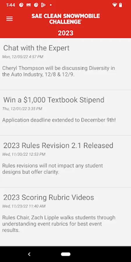 The SAE Clean Snowmobile Challenge app was custom built for the SAE Clean Snowmobile community: competitors, volunteers, spectators, and sponsors. Using the app, you'll have access to competition news, maps, schedules, team list, and more.
