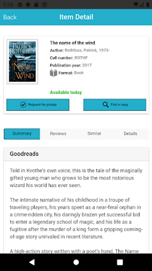 Branch Info: You'll find branch information conveniently displayed so that you can navigate to your nearest library easily.