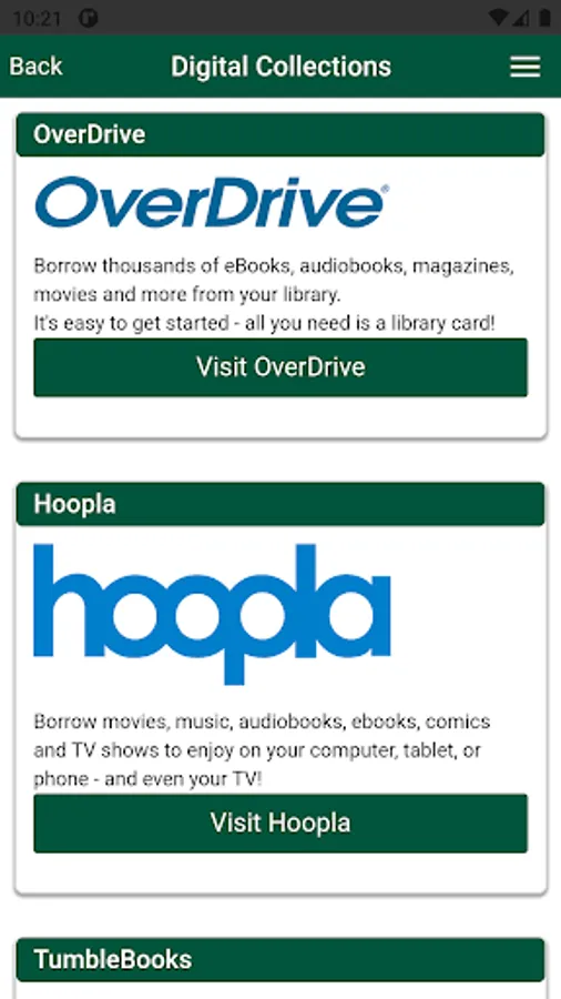 Search the Library’s catalog, access your account, place and renew holds, download materials, stream movies, discover events and programs, and find a Library location near you with this easy-to-use mobile app. Free with your Library card.
