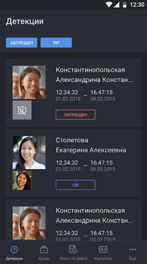 автоматизированного обнаружения, распознавания и поиска лиц с