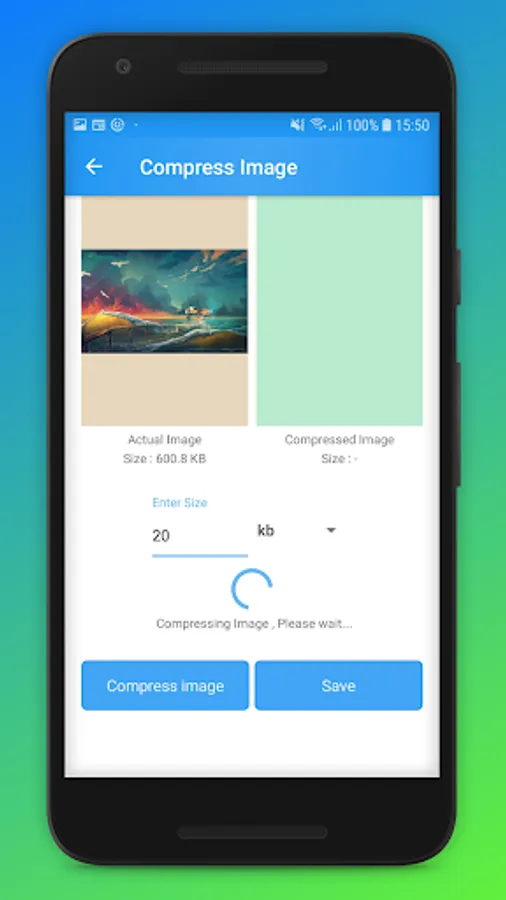 Compress Image app will reduce image size from MB to kb or any size you need.