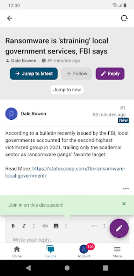 Welcome to the CompTIA ISAO Cyber Forum community! Everything you loved about engaging with our community now in a mobile experience. Enjoy quick access to the latest activity, custom gesture support, and set preferences for what you receive notifications about.