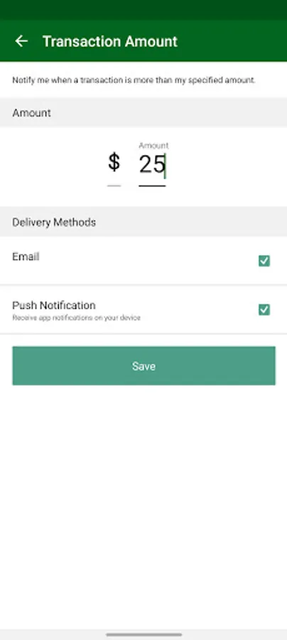 • Set up transaction alerts via email, text or push notifications