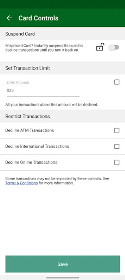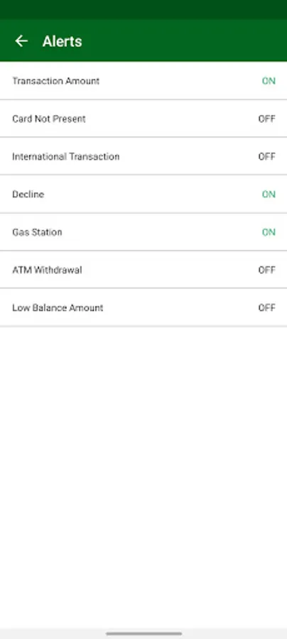 • Turn card on/off with Card Controls