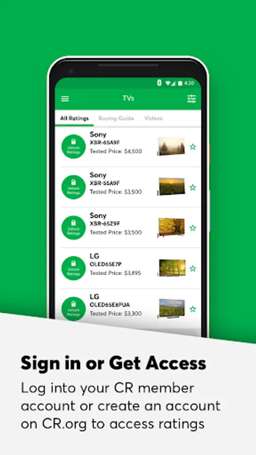This app is free to download and users get immediate access to buying guides. Product ratings and reviews are only available to those with a Digital or All Access membership to Consumer Reports.