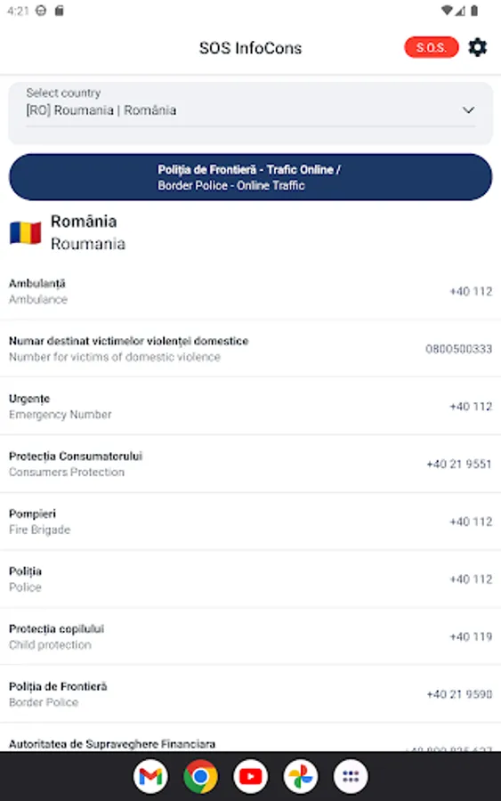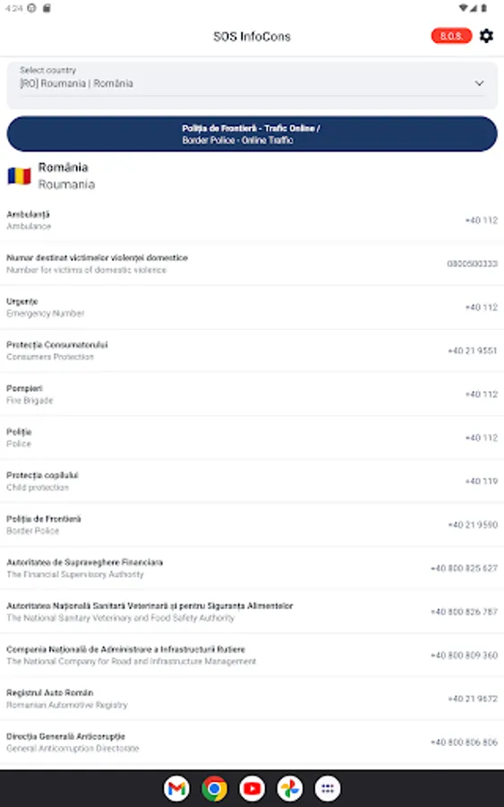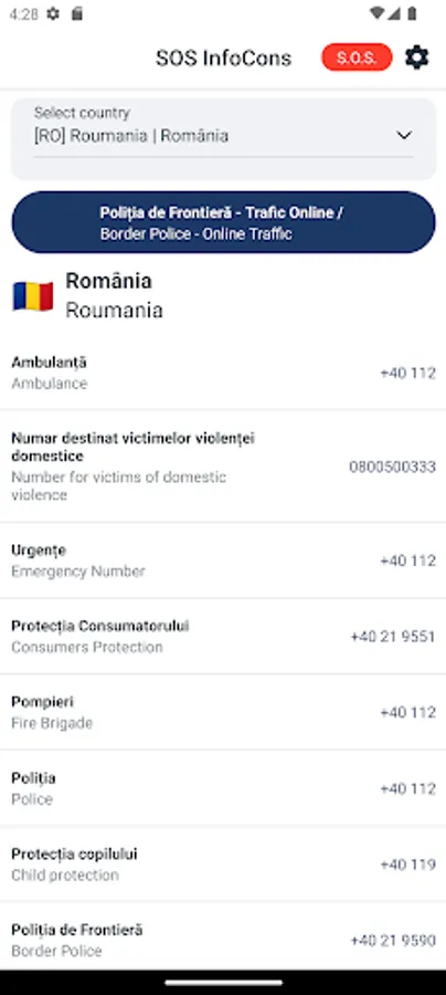 SOS InfoCons, the application that should not be missing from your phone! Whether you are in your country, visiting or for a professional purpose in another country, SOS InfoCons is indispensable for you. In times of emergency, when every moment counts, it's helpful to have all the emergency numbers you need in one place! The process of searching for emergency numbers on various web pages can be time consuming, and in times of crisis this is the most valuable!
