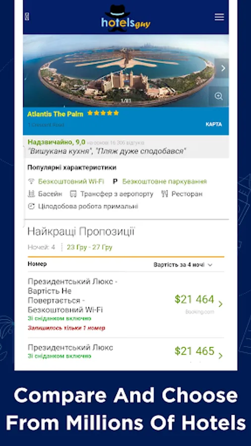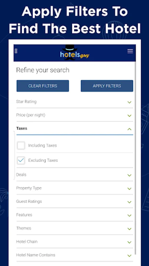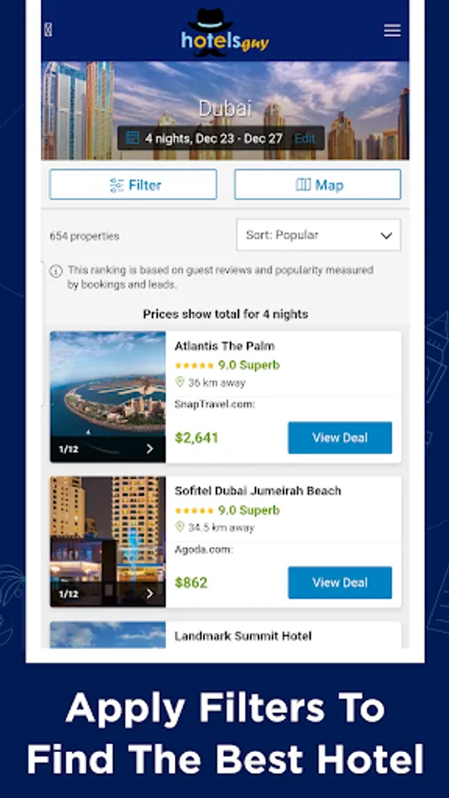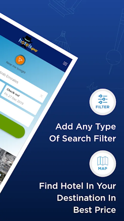 Cheap Hotels Booking Near Me by hotelsguy - enables you to evaluate the hotel deals and hotel booking, and decide the best for yourself. This handy app brings you the cheap hotels from the best hotel booking websites including Booking.com, Expedia, Agoda, Hotels.com, etc.