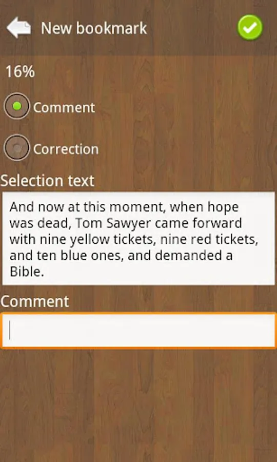 Bookmarks on text fragments (comments or corrections) - useful for proof reading.