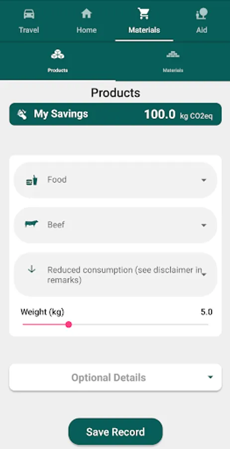 * Take climate action and record savings of CO2 emissions under four categories: Travel, Home/Office, Materials and Social Responsibility.
