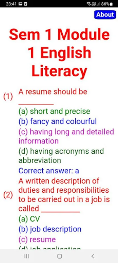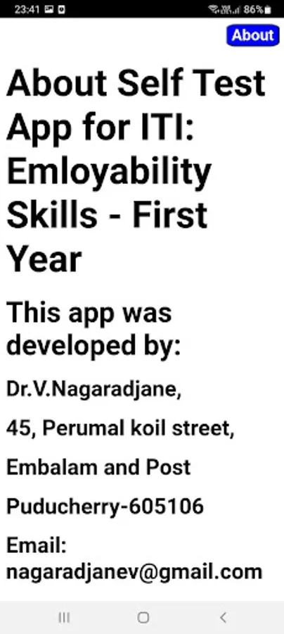 This app uses the question bank released by National Instructional Media Institute (NIMI), Chennai. This app allows self study and self testing in Employability Skills subject.