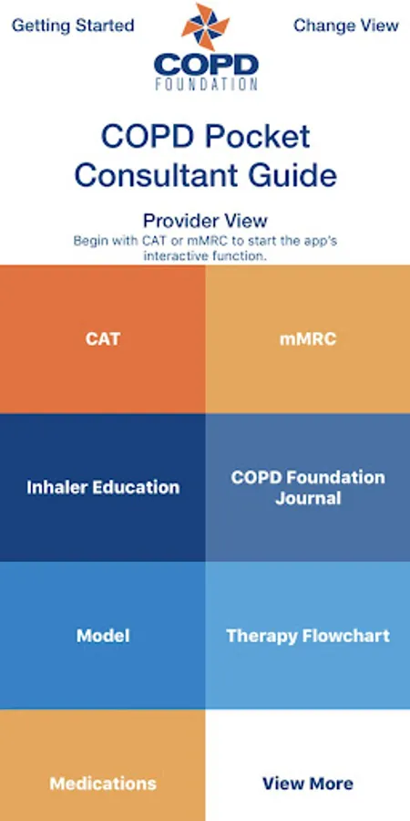This is the COPD Foundation's Pocket Consultant Guide (PCG) app. The latest version of the app has sections devoted to 1) patients & caregivers and 2) healthcare providers.
