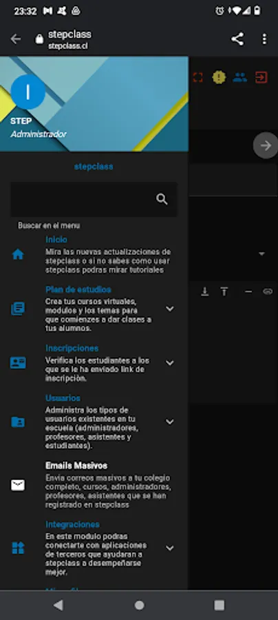 Aplicacion para gestion y administraciòn de cursos online con modulos como inscripciones, correos, calendarios, estados de entrega de actividades y multiples actividades necesarias para el desarrollo del curso.