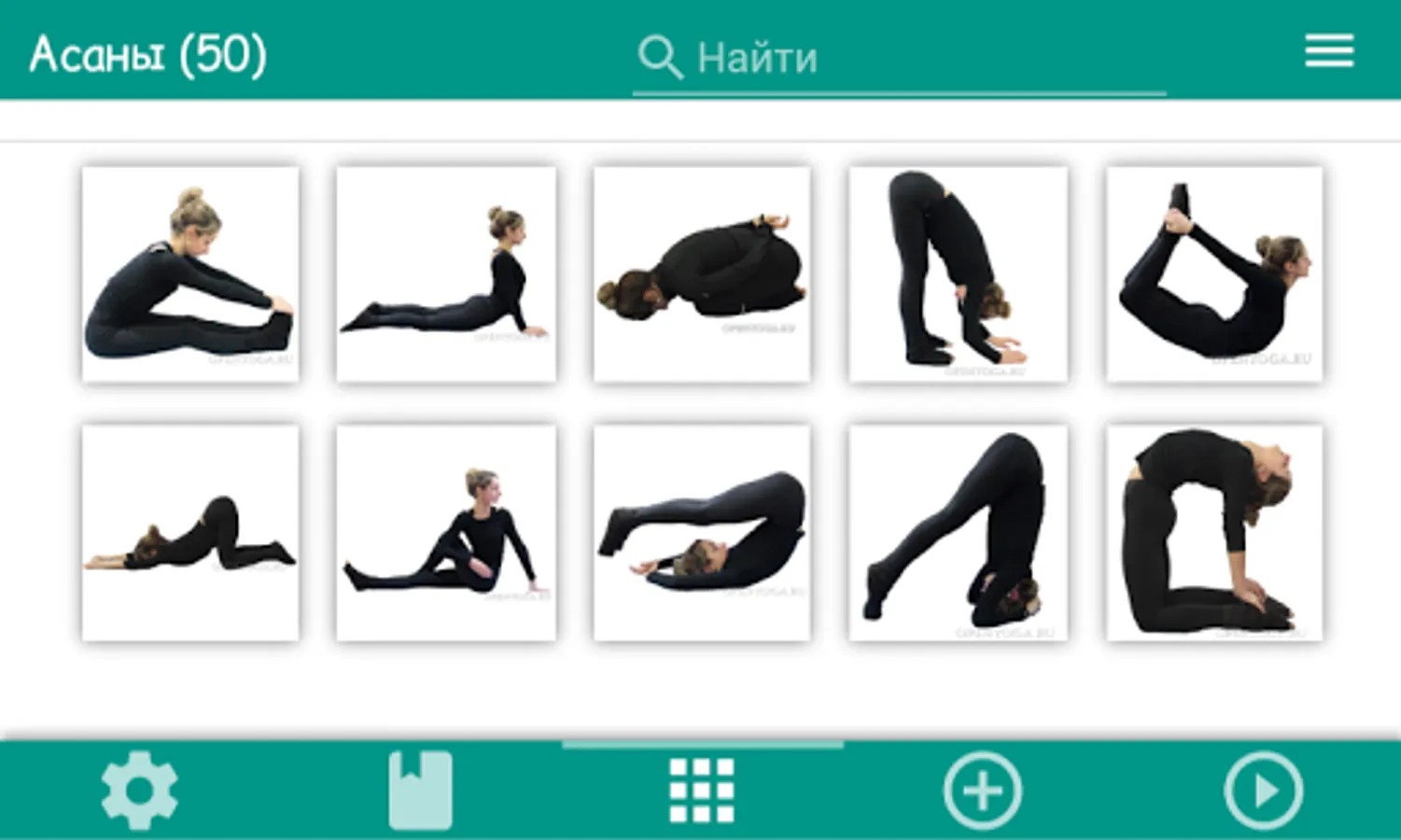 The application used fotokartinki poses, video instructions and descriptions of postures from the site of the International Open Yoga "Yoga Free Online Courses" University.