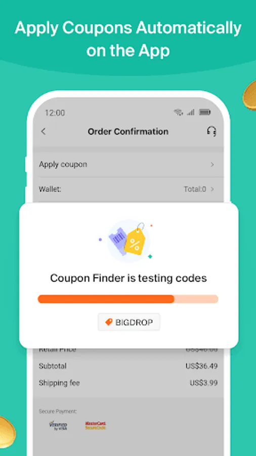 Coupon Finder automatically applies the best coupon code at checkout! It works on both websites and mobile apps.