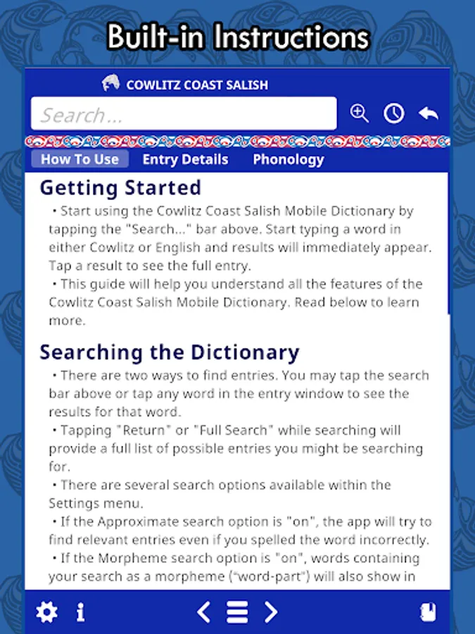 • The Cowlitz Coast Salish Mobile Dictionary uses a simple tap and go interface