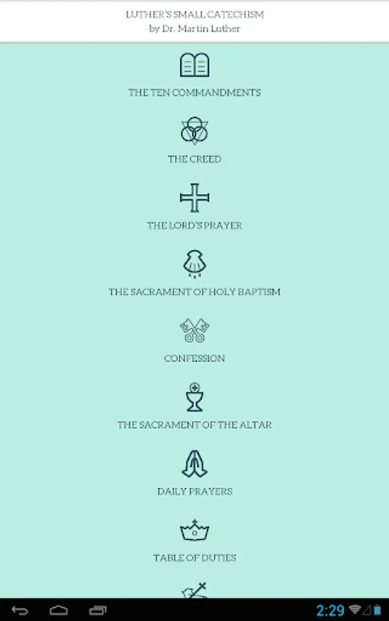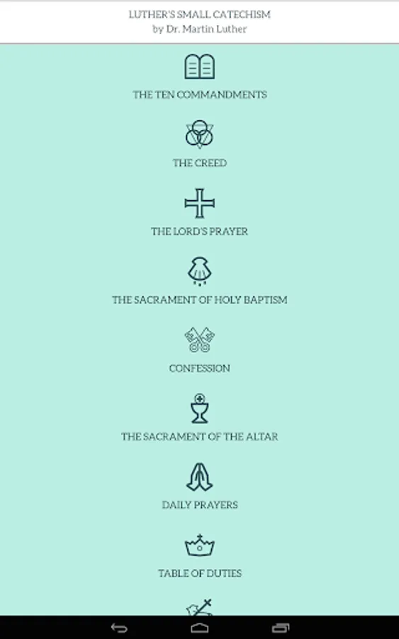 Reference the official 1986 version of Luther’s Small Catechism wherever you are. This beautifully designed app makes reading and navigating the Small Catechism easy and convenient.