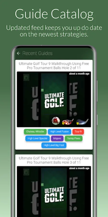 The user-friendly app design makes it easy to sift through the full library of tutorials demonstrating and explaining the concepts of the game. The full screen Wind Calculator gives precise estimations for wind adjustments for all clubs. Refine adjustments using the elevation and Min/Mid/Max range slider. Multi-bag support for easy club switching is available to subscribers. The catalog of in game courses makes it easy to search and find the holes you are looking for, and video tutorials showing how to play the holes in the best ways.