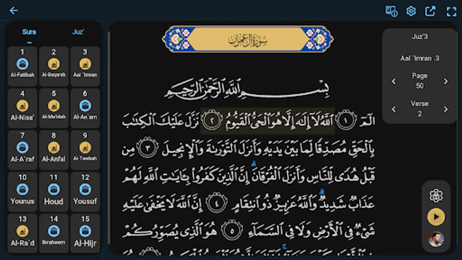 Different sections of Noor al-Qur’an App are as follows: