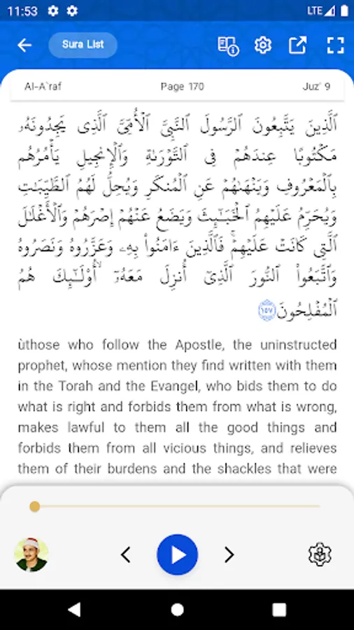 This app was designed to be used in mobile phones having the Android OS, and is at the disposal of dear users on line. Even having disconnected from the Network the users can enjoy the text of the Qur’an, two translations, two exegeses, as well as the recitation of the Qur’an offline.