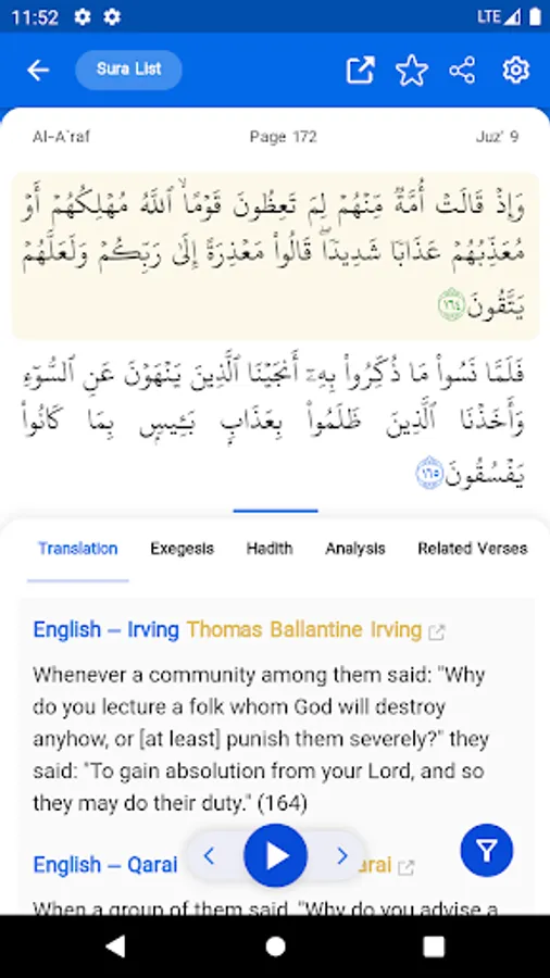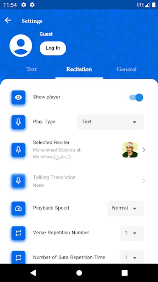 Different sections of Noor al-Qur’an App are as follows: