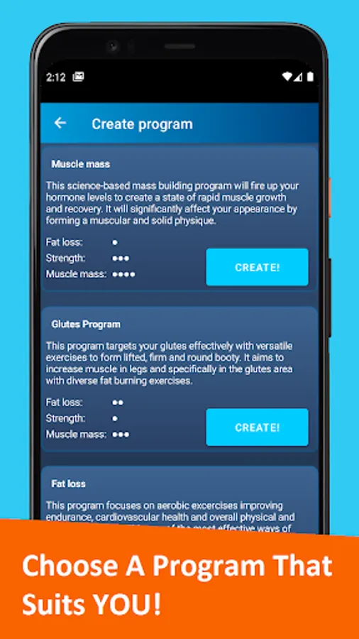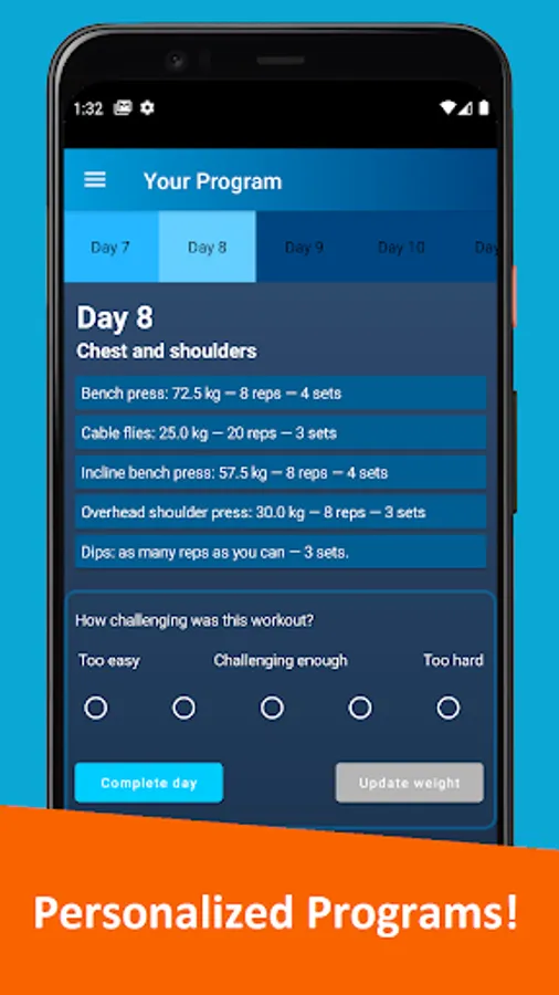 Personalized easy & science based workout programs, calculated weights and more! FitPlanner uses science, researches and algorithms to calculate workout programs that serve your personal needs and requirements to guarantee best results. Whether it is losing fat, gaining muscle or shaping a solid physique of your dreams.
