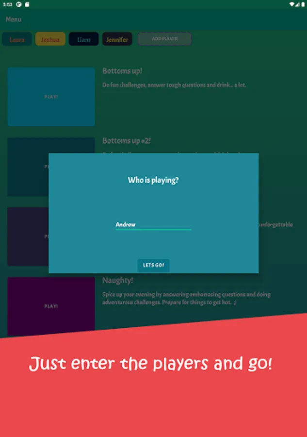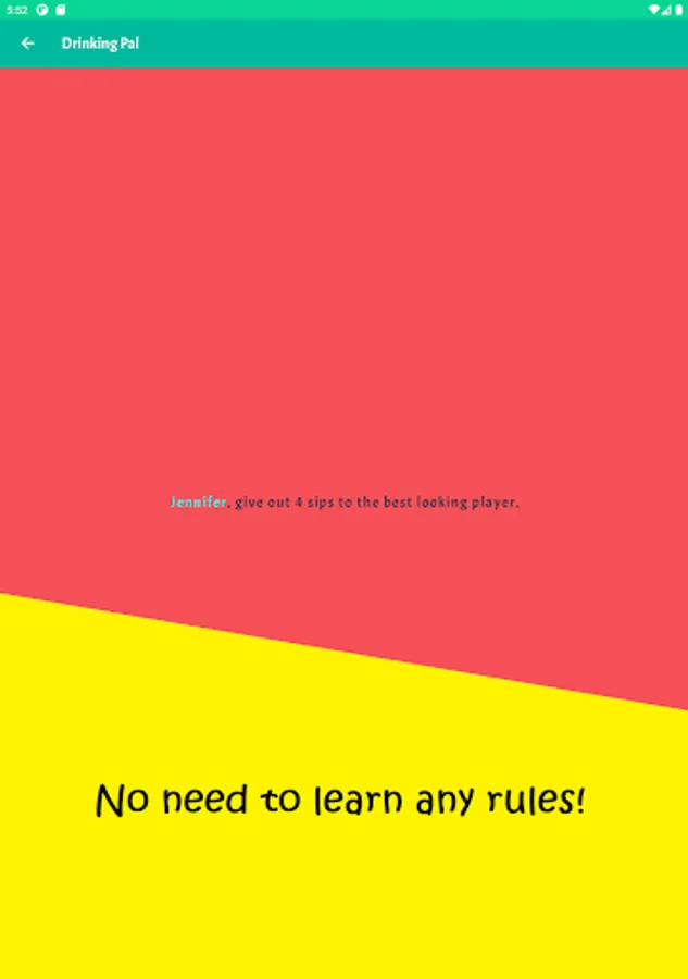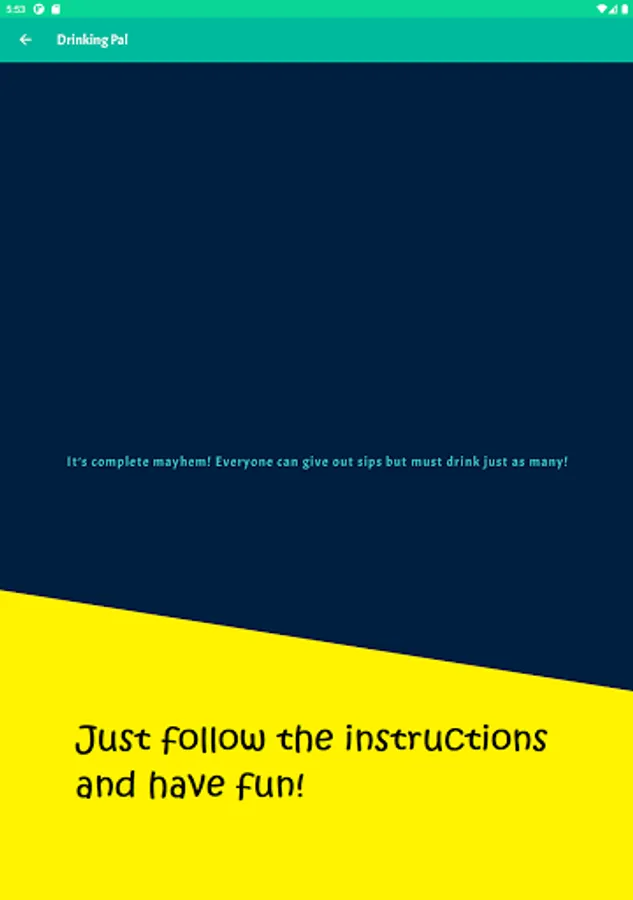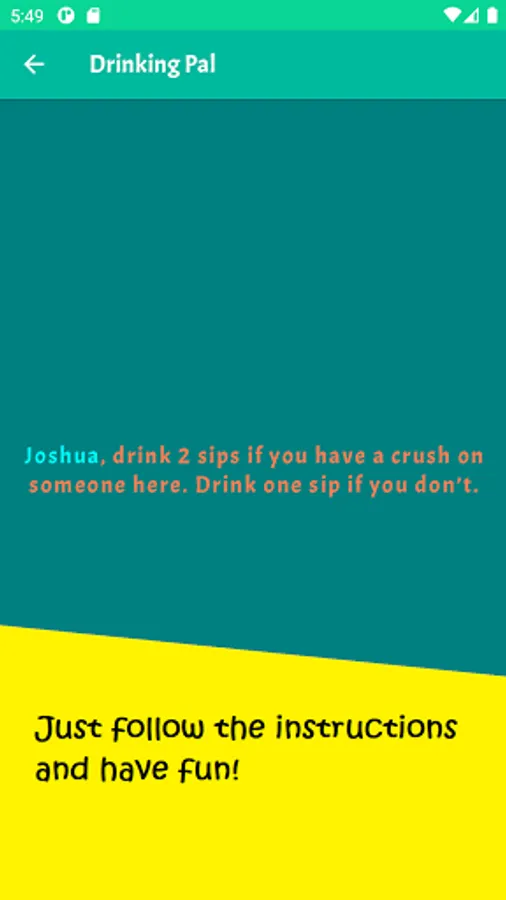 Drinking game to spice up your social events! Drinking Pal offers questions, dares and games for all types of social gatherings. Interactive and easy to use social game intended to be played with soft drinks or water. Just enter the names of the players and Drinking Pal will do the rest!