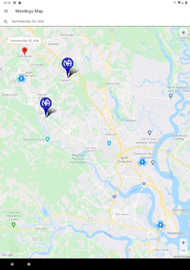 - a map of meeting locations, with meeting details, and driving directions to each meeting