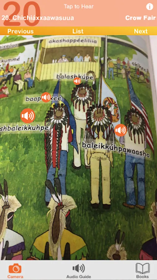 The Crow Media Player is a companion to the Crow Language Consortium series of textbooks and children's books. Just point your phone at the page and tap to hear native speakers pronounce the words. The audio guide section gives you complete access to the textbook vocabulary with an easy tap and swipe interface.