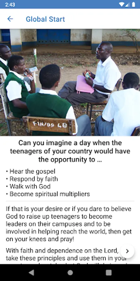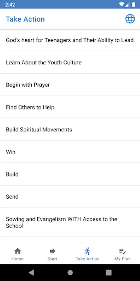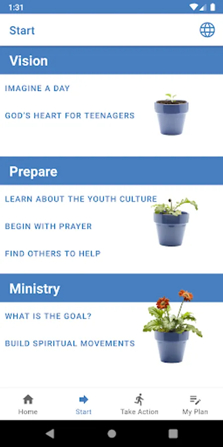 Global Start is for anyone in the world who would like to start a Christian youth movement. Pray and go through each section of the app. The “Take Action” buttons will reveal action steps and questions for you answer that will help you develop a Movement Plan for reaching young people with the good news of Jesus Christ. Share your stories, ideas and resources in the app, and look at the news section regularly, to be connected to a community of people around the world who also have the vision to see teenagers become followers of Jesus and make an impact in their culture for the glory of God.