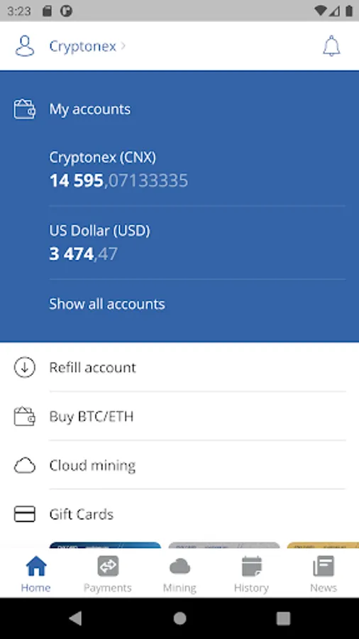Multifunctional application for working with cryptocurrencies which includes many services. The mobile app interacts with your Cryptonex account.