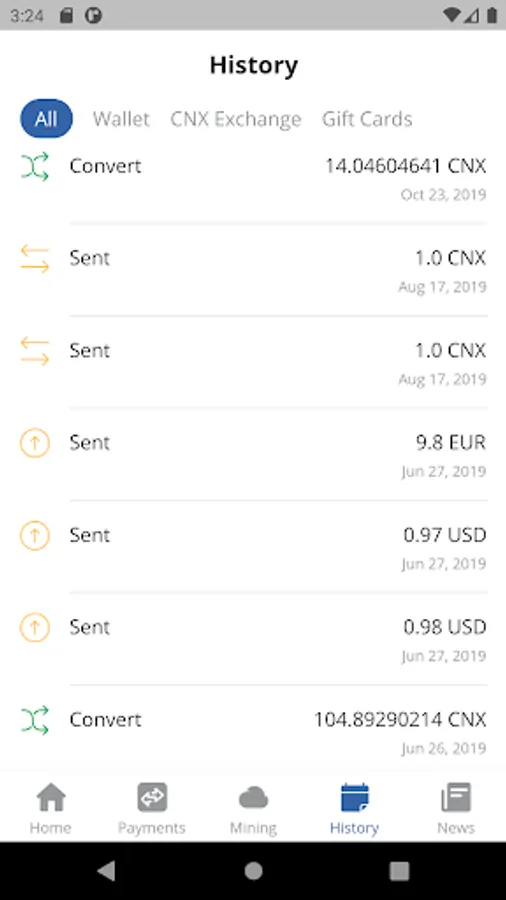 In Settings section you can enable the Auto-convert function and all the funds that you deposit will be converted to CNX.