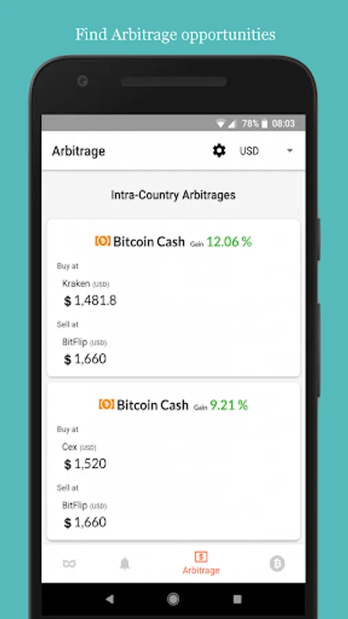 ☛ Arbitrage - Track the most profitable arbitrages opportunities available in the cryptocurrency world.