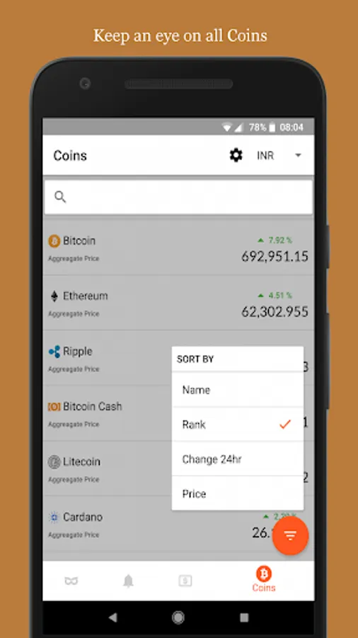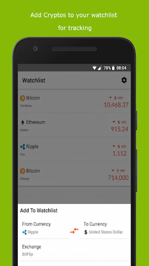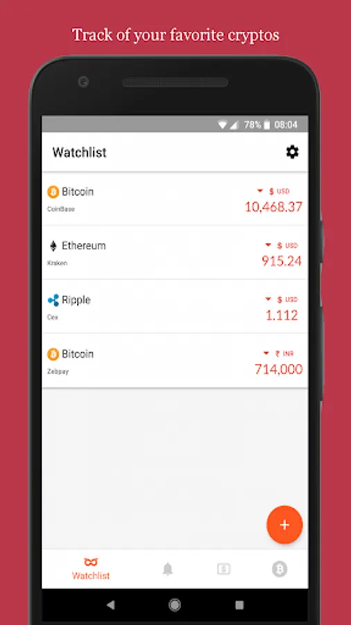 ☛ Watchlist - Track all the latest and most relevant cryptocurrencies prices from all the supported exchanges