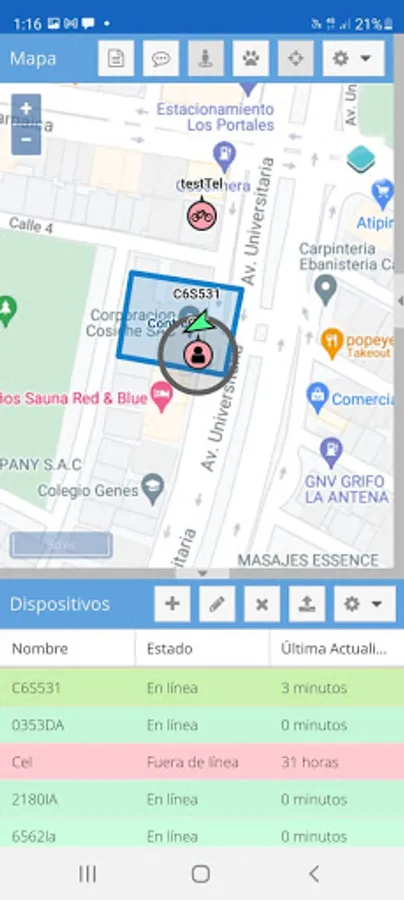 Application to locate and track vehicle units and people thanks to wired, wireless and cellular GPS devices.