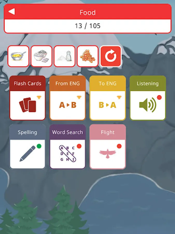 New word-search and flying bird games are great for young learners! Words that are not matched correctly are repeated until you master them. This repetition method is an effective learning strategy.