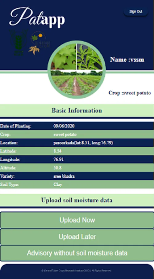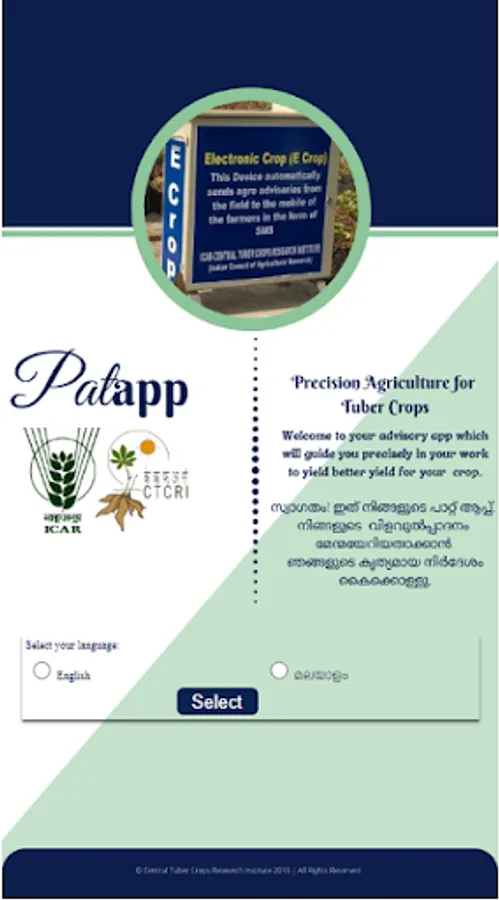 PATapp is a mobile app which helps to perform Precision Agriculture in Tuber Crops. It is developed by ICAR-Central Tuber Crops Research Institute. The app deals with important tuber crops like cassava, seetpotato and elephant foot yam as well as banana. It provide advisory on exact quantity of inputs like NPK fertilizers and water, which are to applied to these crops to attain potential yield at optimum dosage of these inputs.
