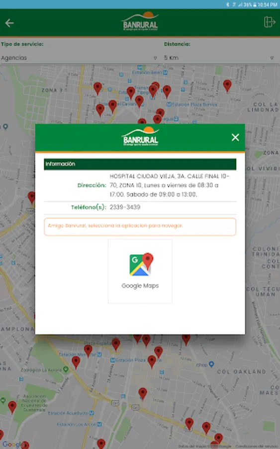 With your APP BANRURAL also easily find the location of your closest points BANRURAL service you can contact us for any inconvenience this presents.