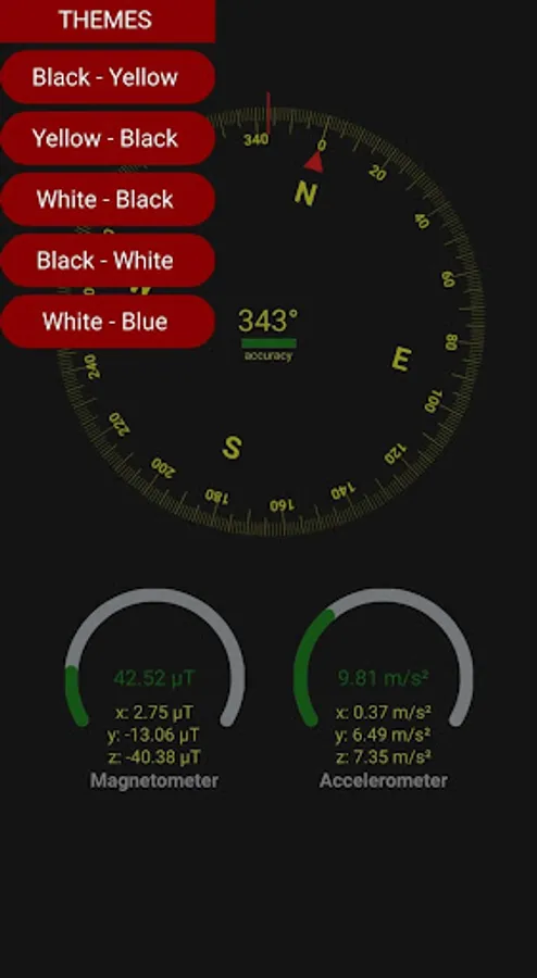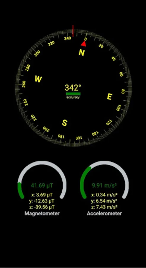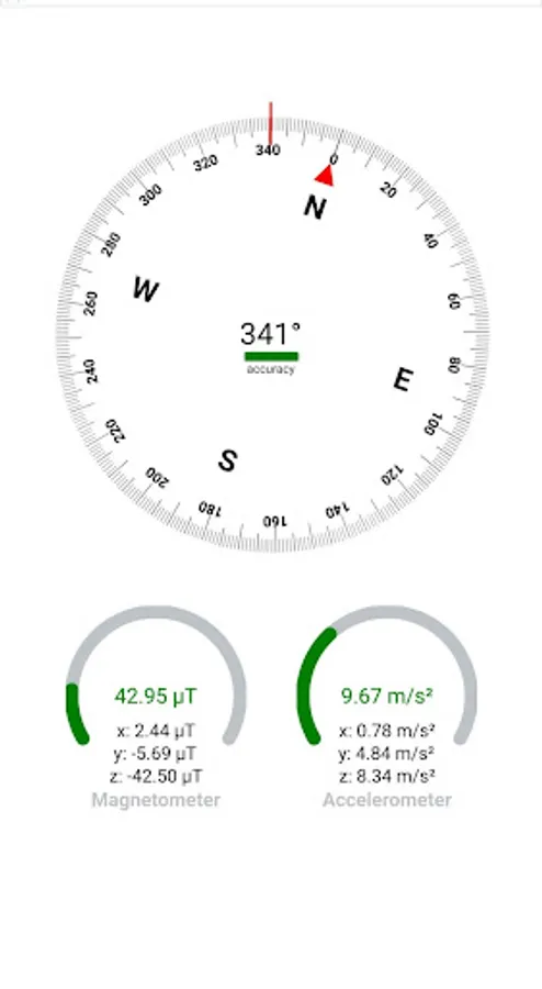 A simple application to track and correlate azimuth value with magnetometer and accelerometer sensor values.