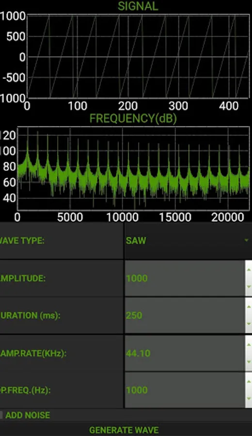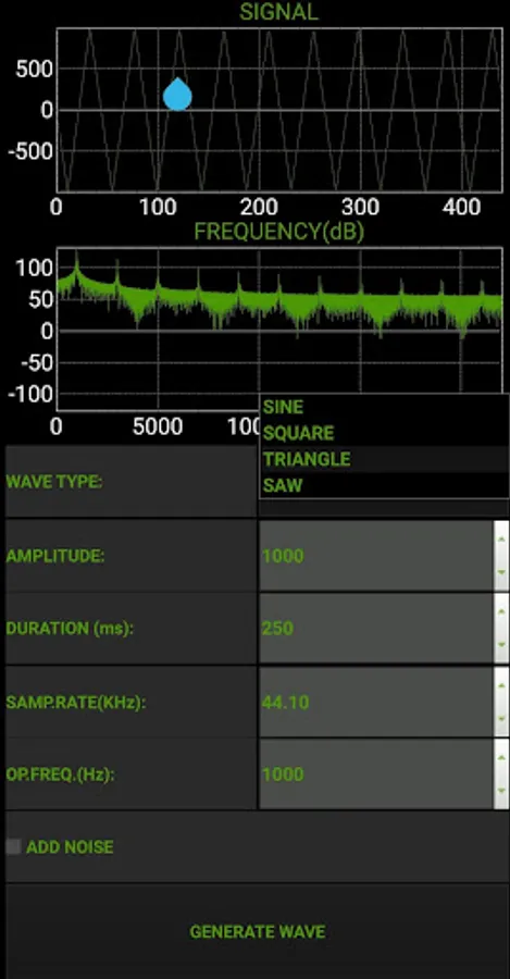 -Generates Sinus,Triangle,Square and Saw types of waves