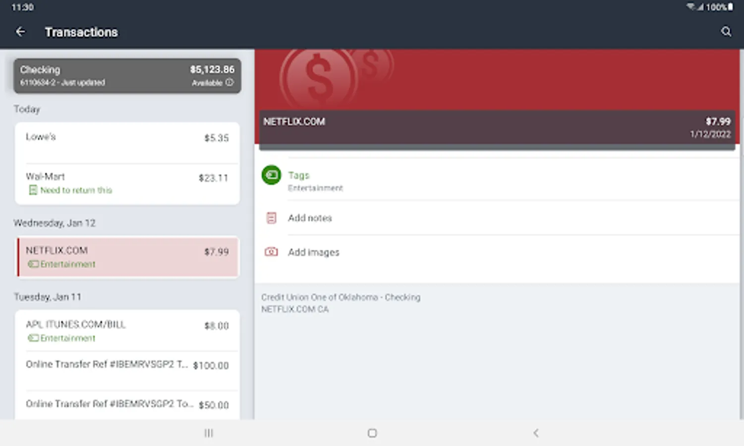 Keep your transactions organized by allowing you to add tags, notes and photos of receipts and checks.