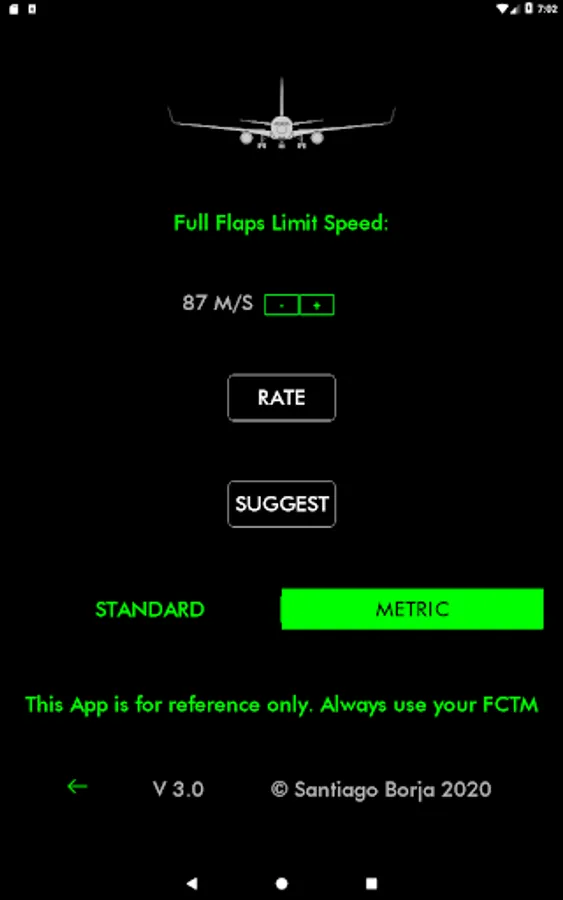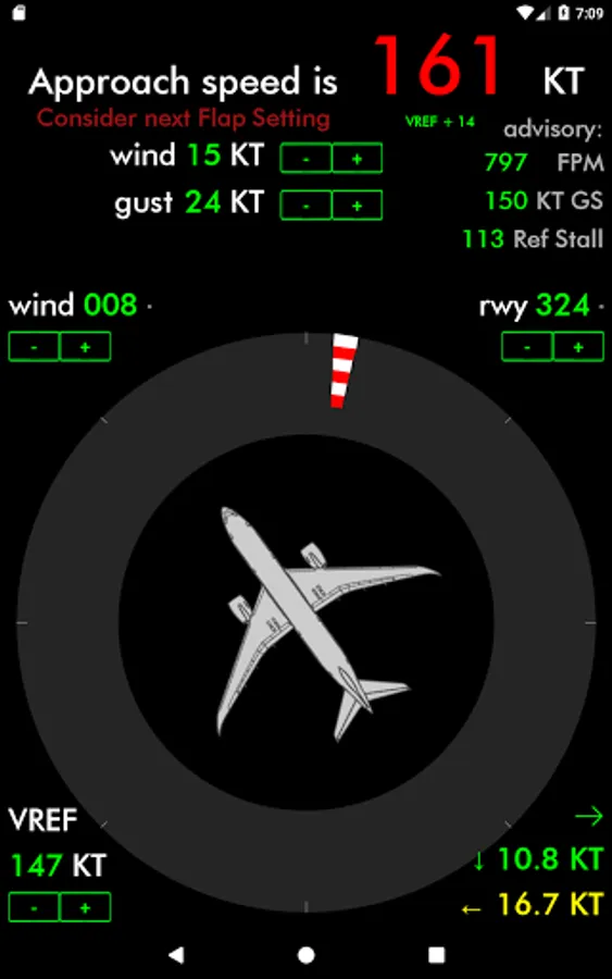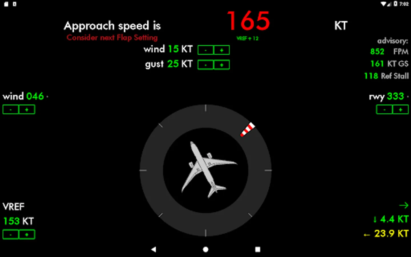This tool allows you to calculate a safe Approach Speed for your next landing. Specially in windy conditions, you don't want to calculate your Approach speed from memory.