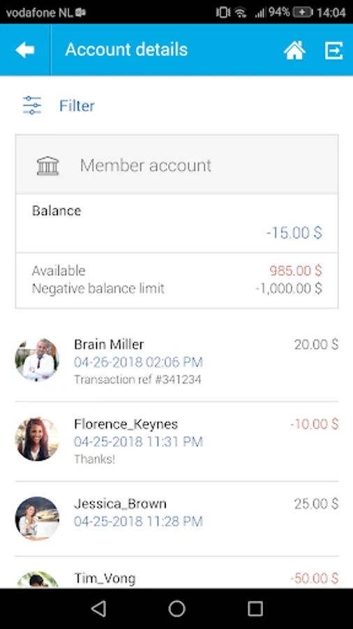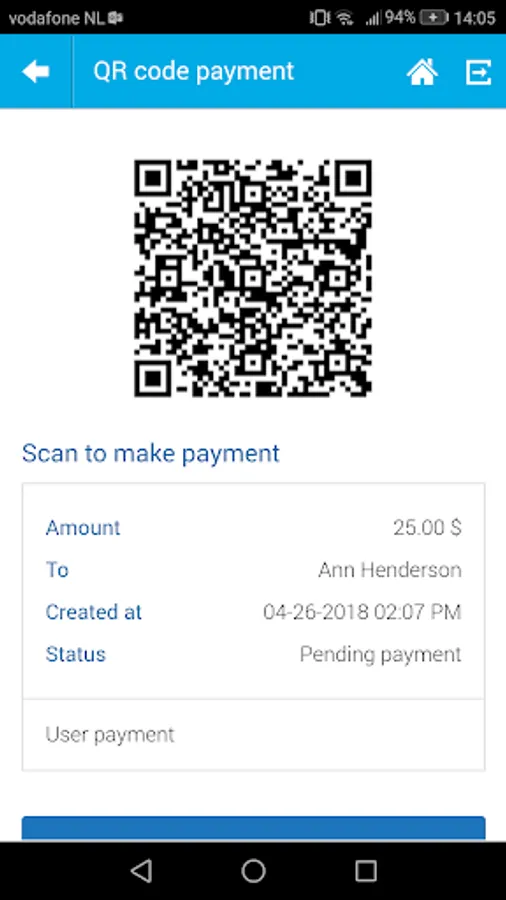 - Receive payments (POS), using NFC card, QR code (camera), card number, and other identification methods