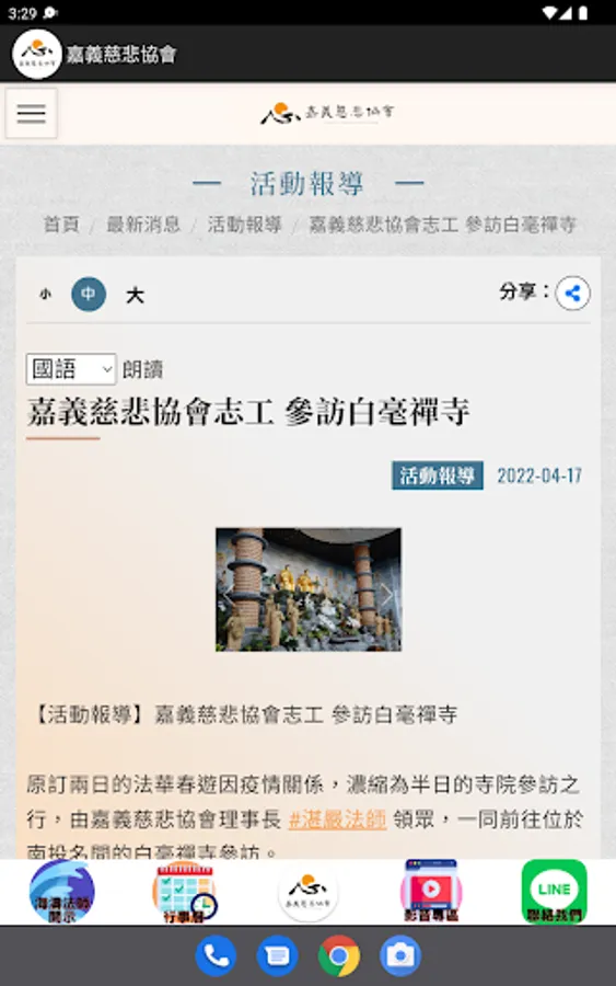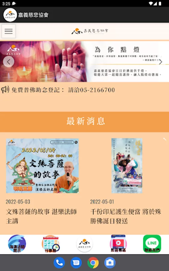 At the beginning of 2022, the Chiayi Mercy Association began to serve the vast number of Bodhisattvas with its website. However, the URL is not easy to remember, and it is also a hassle to type the website. Therefore, the Chiayi Mercy Association's App was born.