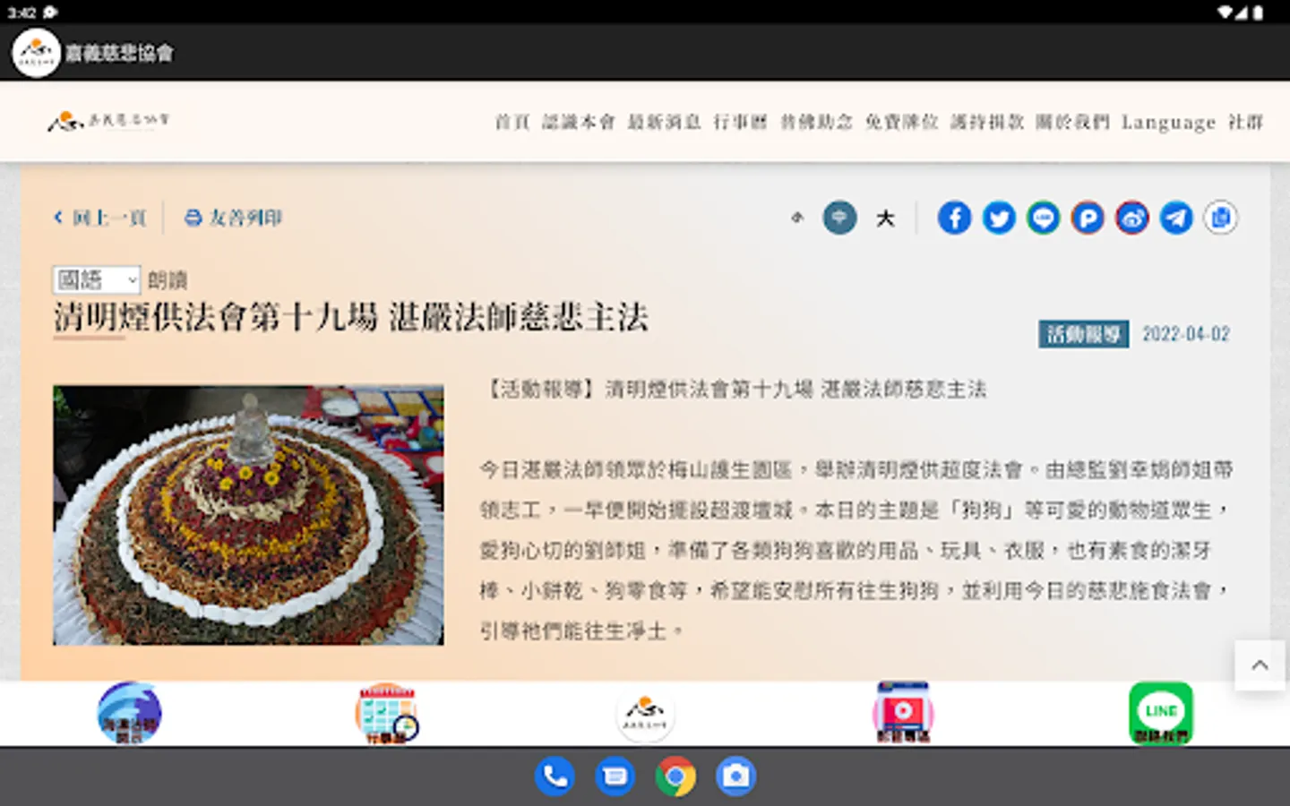 The advantage is that as long as you search for "Chiayi Mercy Association" in Google Play, you can put the entire website of the Chiayi Mercy Association on your mobile phone, no longer need to scan the QRCode, memorize or enter the URL, just directly open the Chiayi Mercy Association App, You can go directly to the website of Chiayi Charity Association.