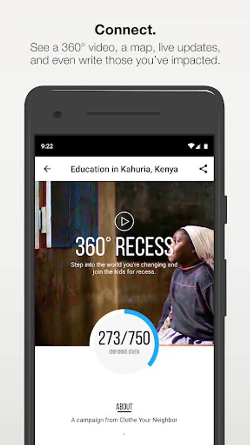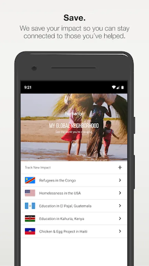 We believe that when you see the world, your worldview changes. The Humanly° app is a window to the world that fits in the palm of your hand. First, make your impact through the innovative organizations that use Humanly° and then track your impact in the app to see how your dollars are making a difference around the world.
