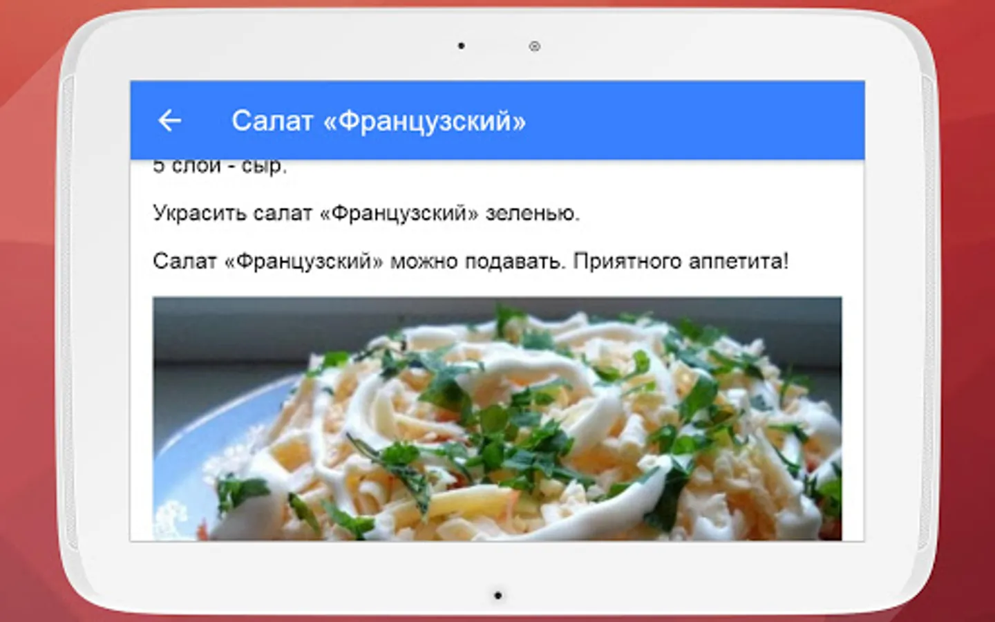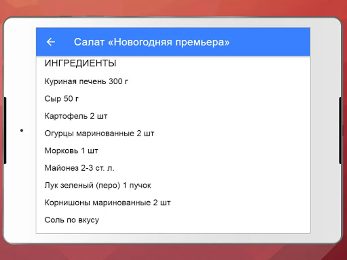 Due to the ability, applications work without the Internet - Does not require an Internet connection - your favorite recipes will always be with you!
