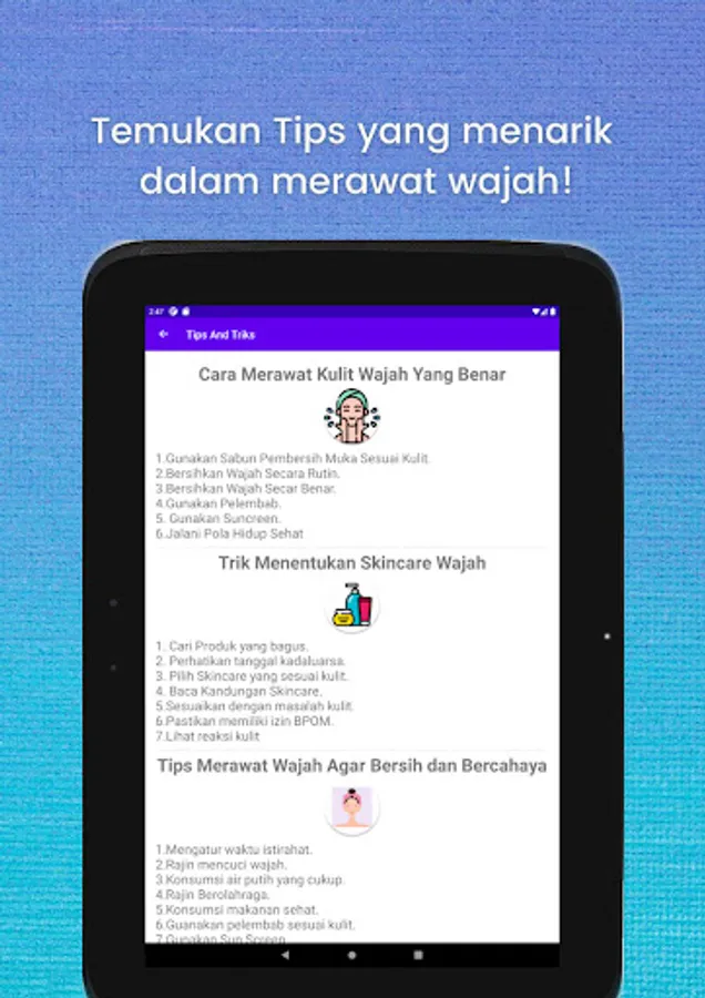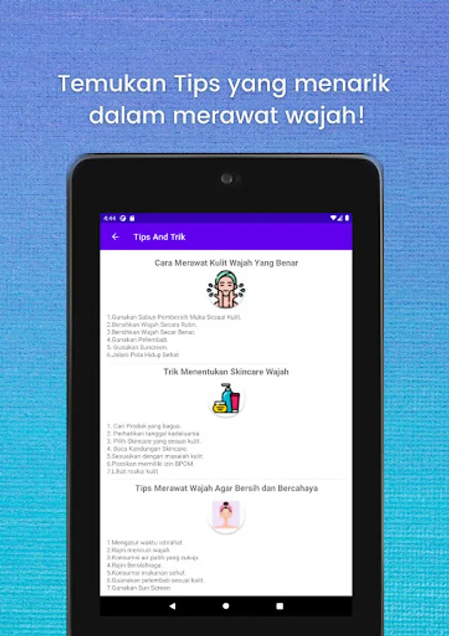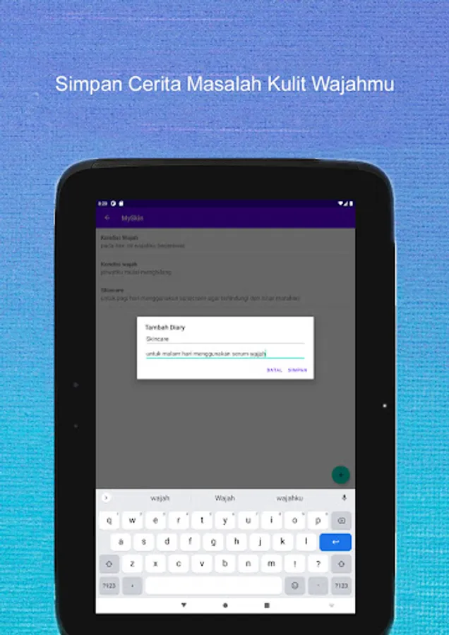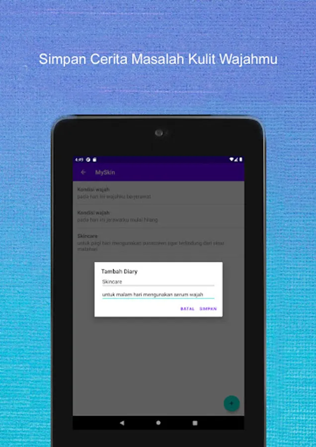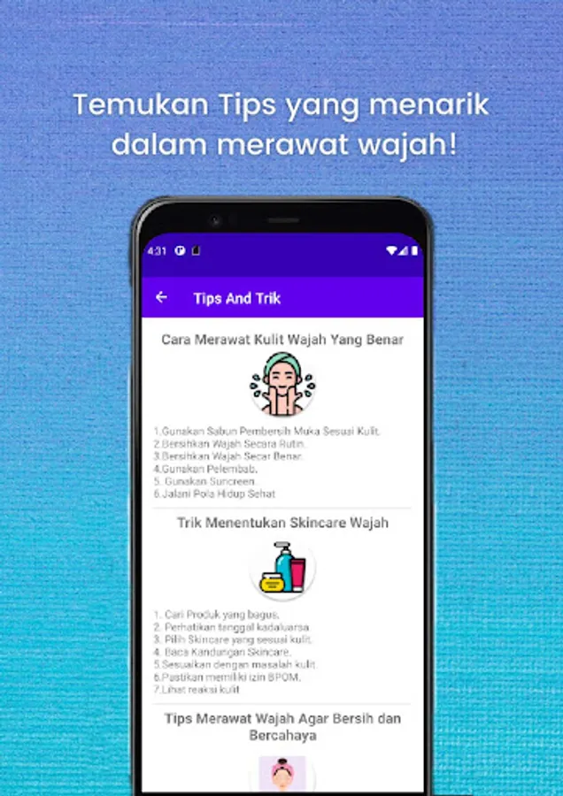 MySkin application is an application that can understand the needs of the skin, especially the face. This application can help users find out specific skin problems whether it's acne, dry and dull skin, wrinkles, oily skin, eczema, or others. Our system recommends safe and effective skin care cosmetic ingredients for Users. So that users don't have to spend hours changing websites to find information about skin and cosmetics on the internet, we summarize all of that in one application, namely MySkin.