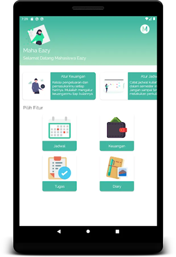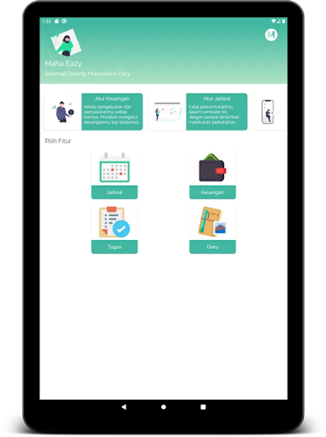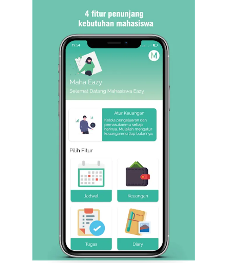 Atur semua kehidupan harianmu mulai dari diari, keuangan, tugas, dan jadwal. Nikmati 4 fitur untuk mengatur hidupmu menjadi lebih eazy.