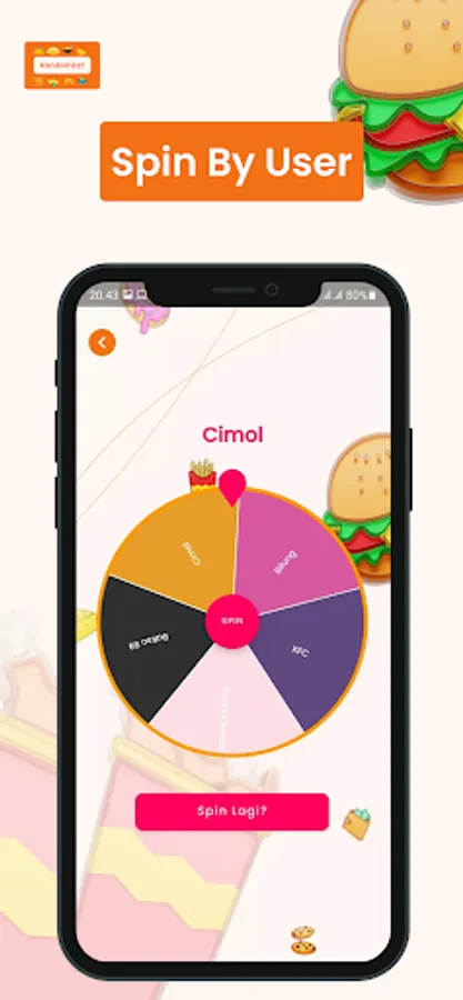 - Spin food by user input, which means that the user enters a list of food and it will be spin by the application later