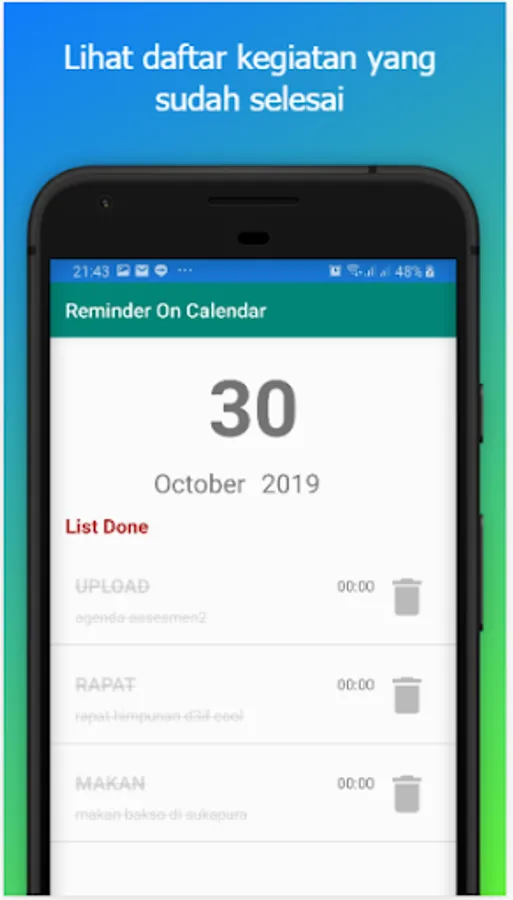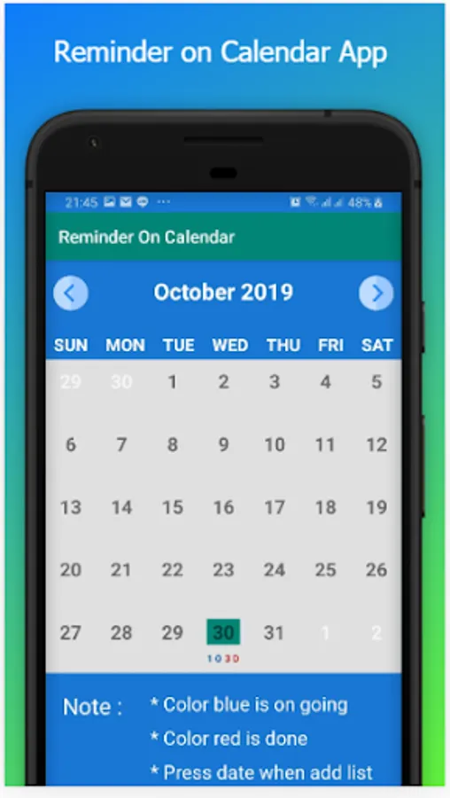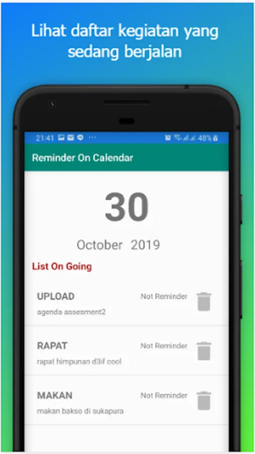 Reminder on Calendar is an application to facilitate users in recording activities.